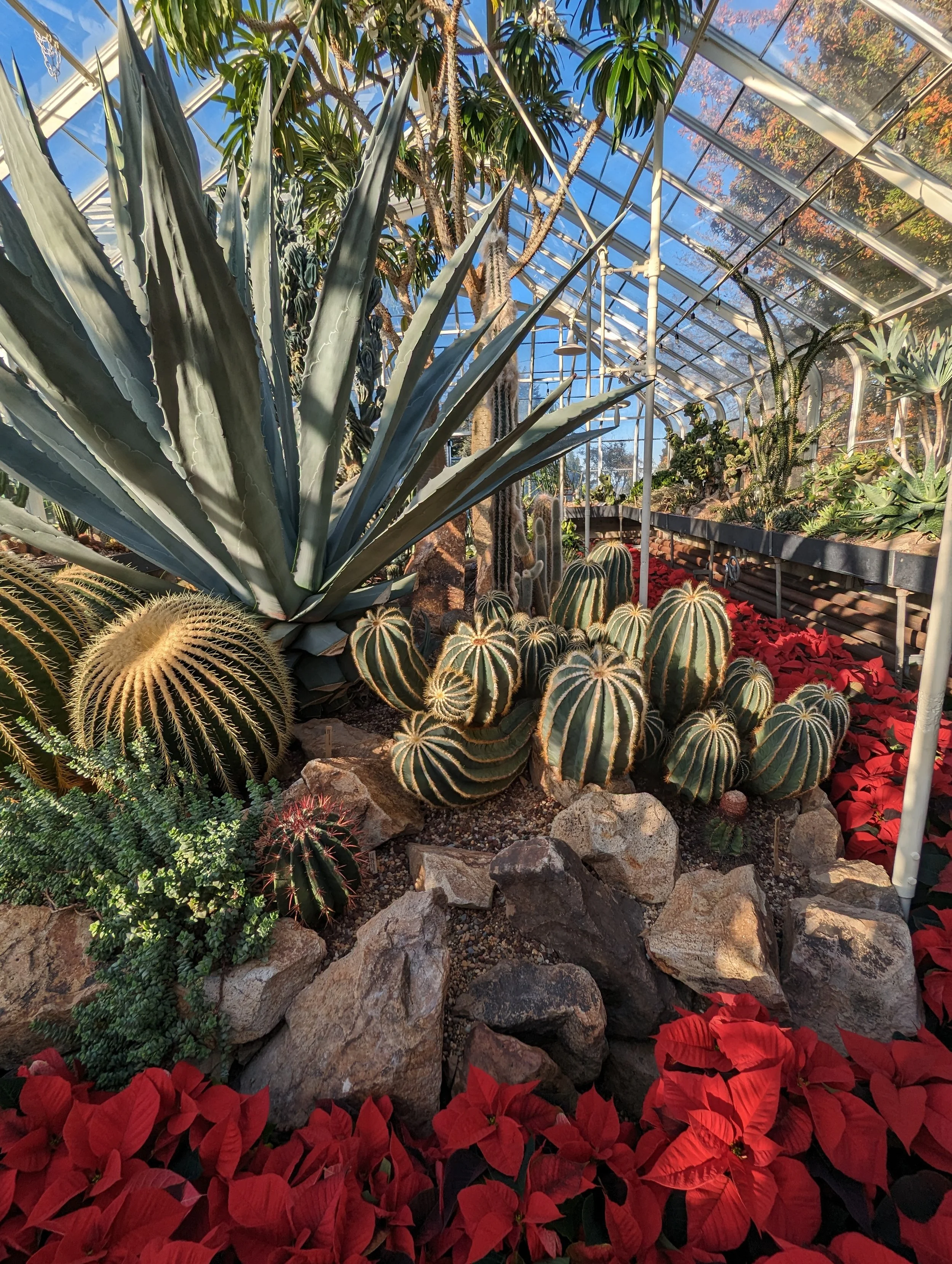 Photo of the Cactus House while it was a poinsettia staging space in 2023 - more like Poinsettia House. Photo by Kathy Buchanan.